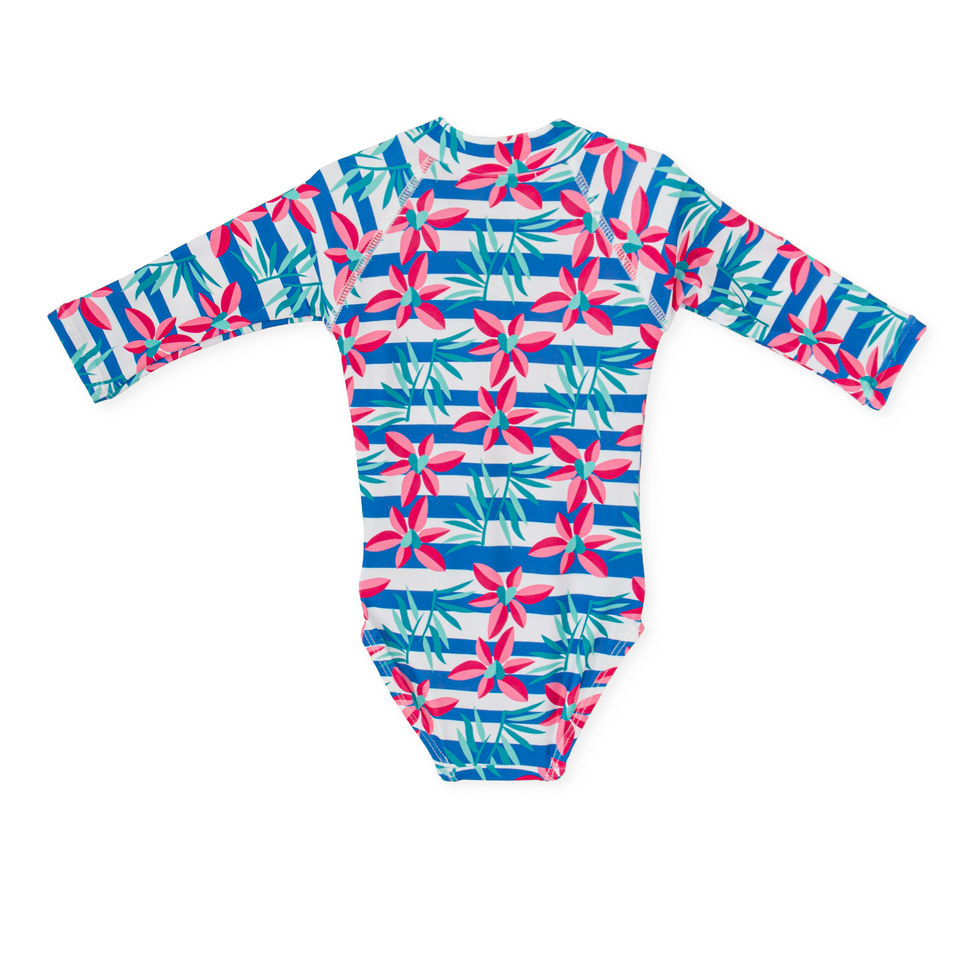 Step into your holiday season in style! This beautiful swimsuit is a garden fun/holiday essential! The long sleeves ensures your little one is safe from the sun, the zip allows for easy access whilst the fun and vibrant print ensures your little one is looking fabulous all summer long!