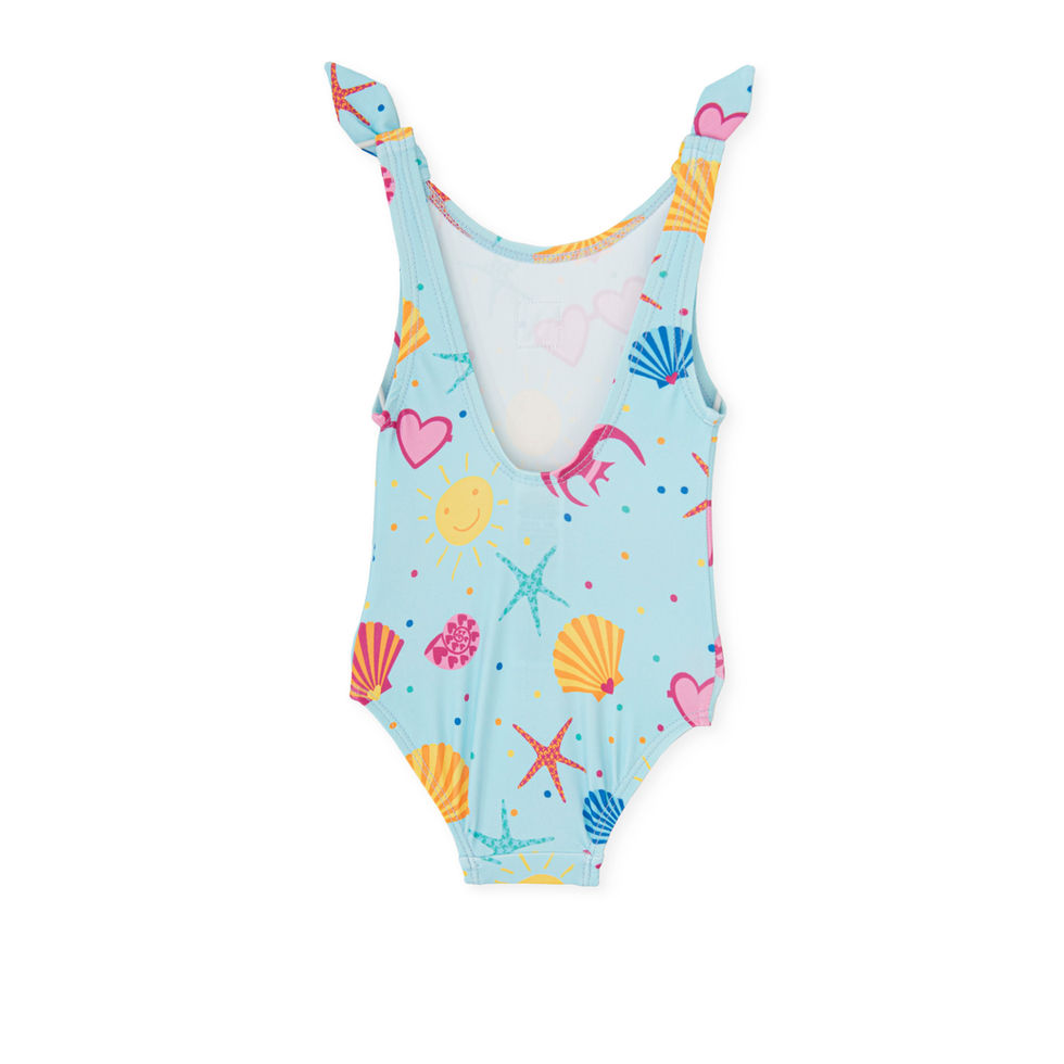 This ocean inspired swimsuit is a fun piece for your little ones holiday adventures! The Frill detail on the strapps adds an extra element of fun whilst the stretchy, durable fabric ensures they're comfortable and ready for summer fun!