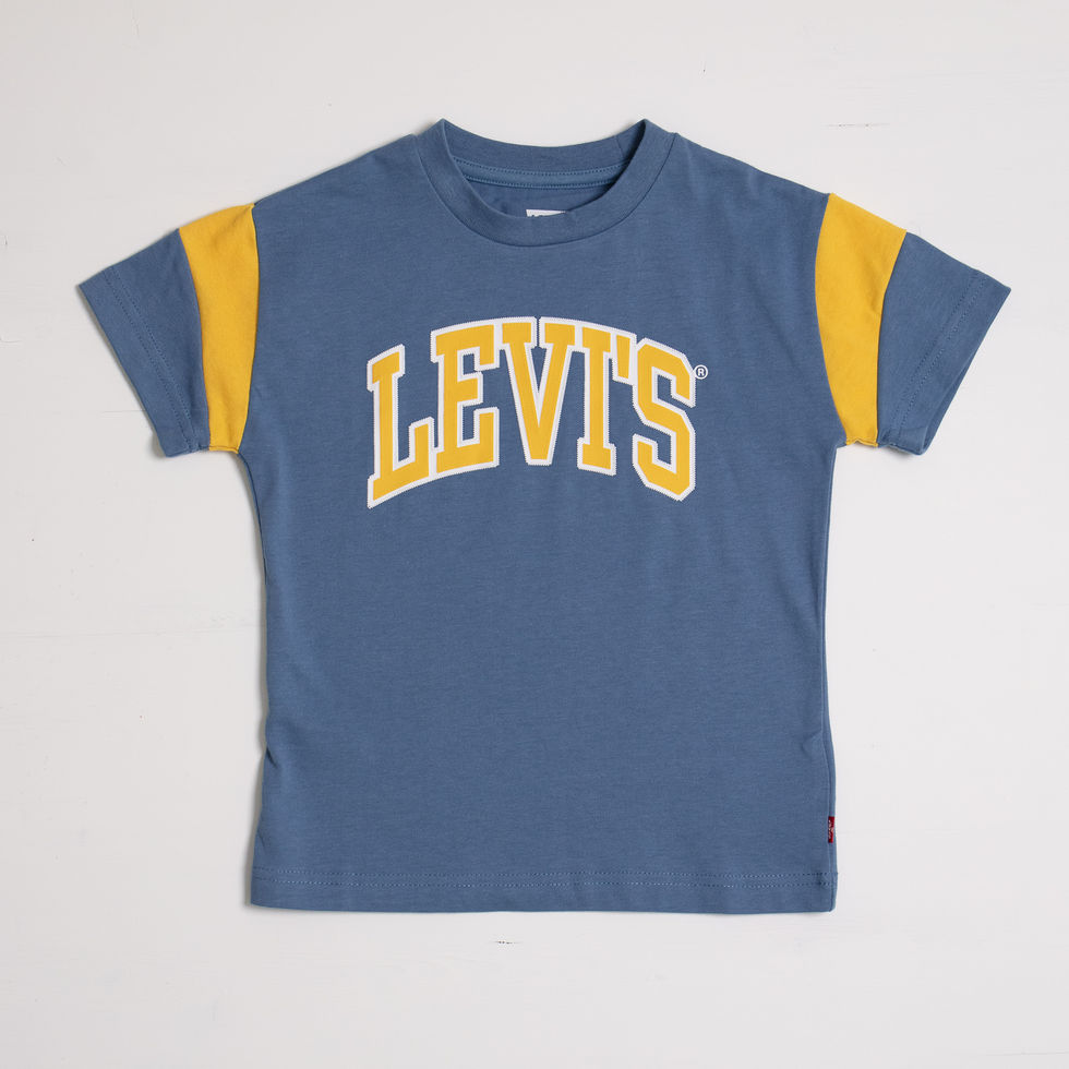 Levis classic t-shirt in mid-blue. This varsity/sport inspired top is a fun addition to your little ones wardrobe! The pop of colour and simple design allows for easy outfit building whilst the soft fabric ensures your little one is comfortable all day long!