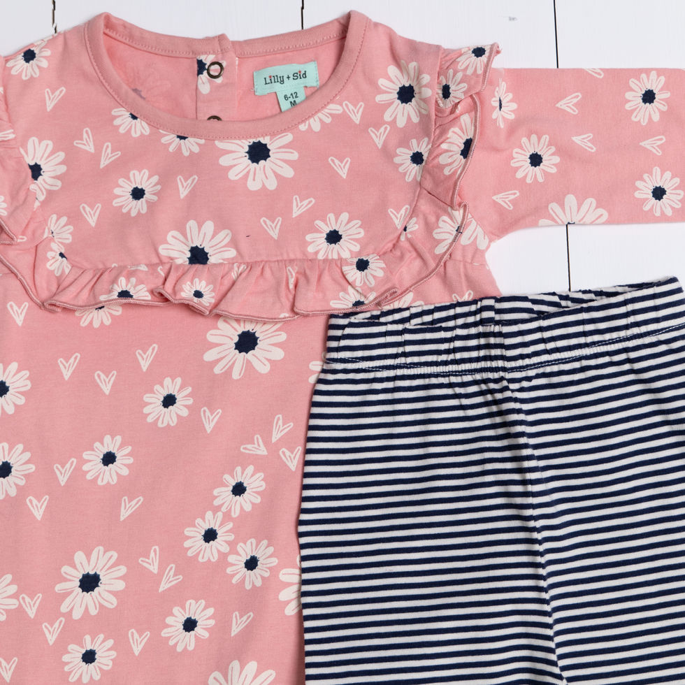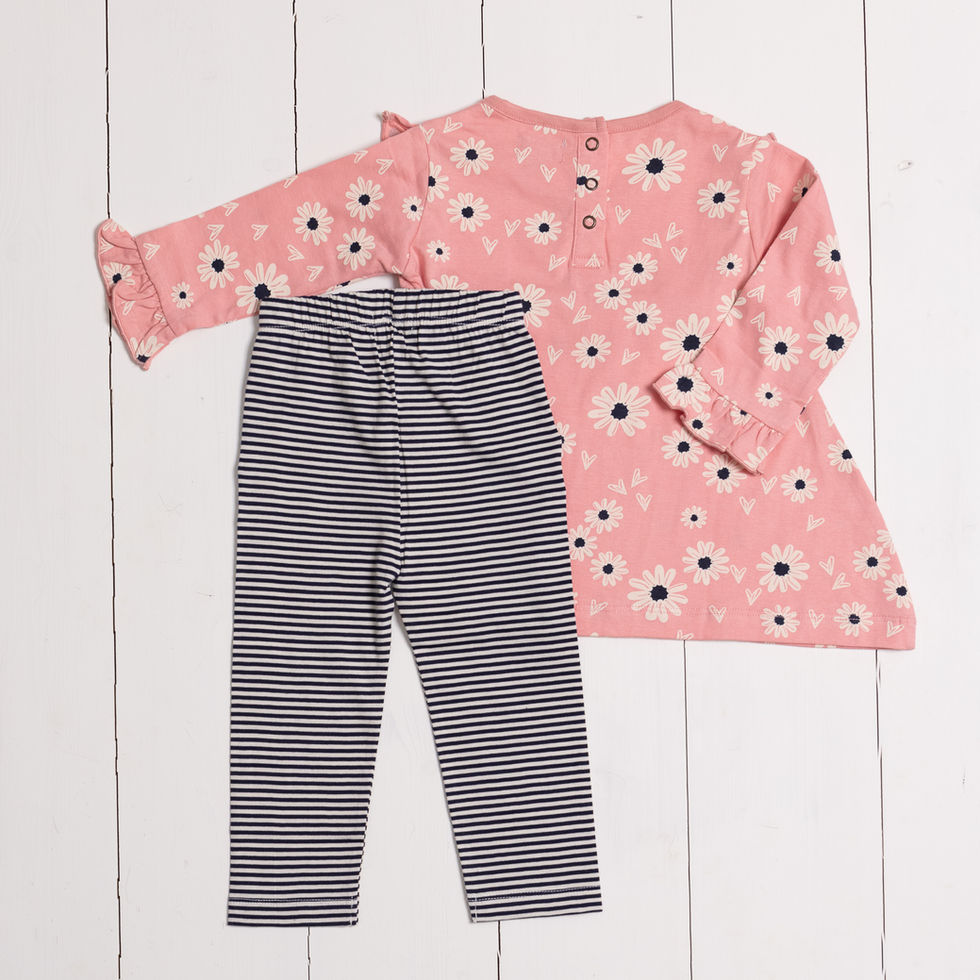 Lilly & Sid Pink Florals Dress And Legging Set. This classic everyday set will be a great addition to their wardrobe! The super cosy fabric and vibrant design will be a winner this season!